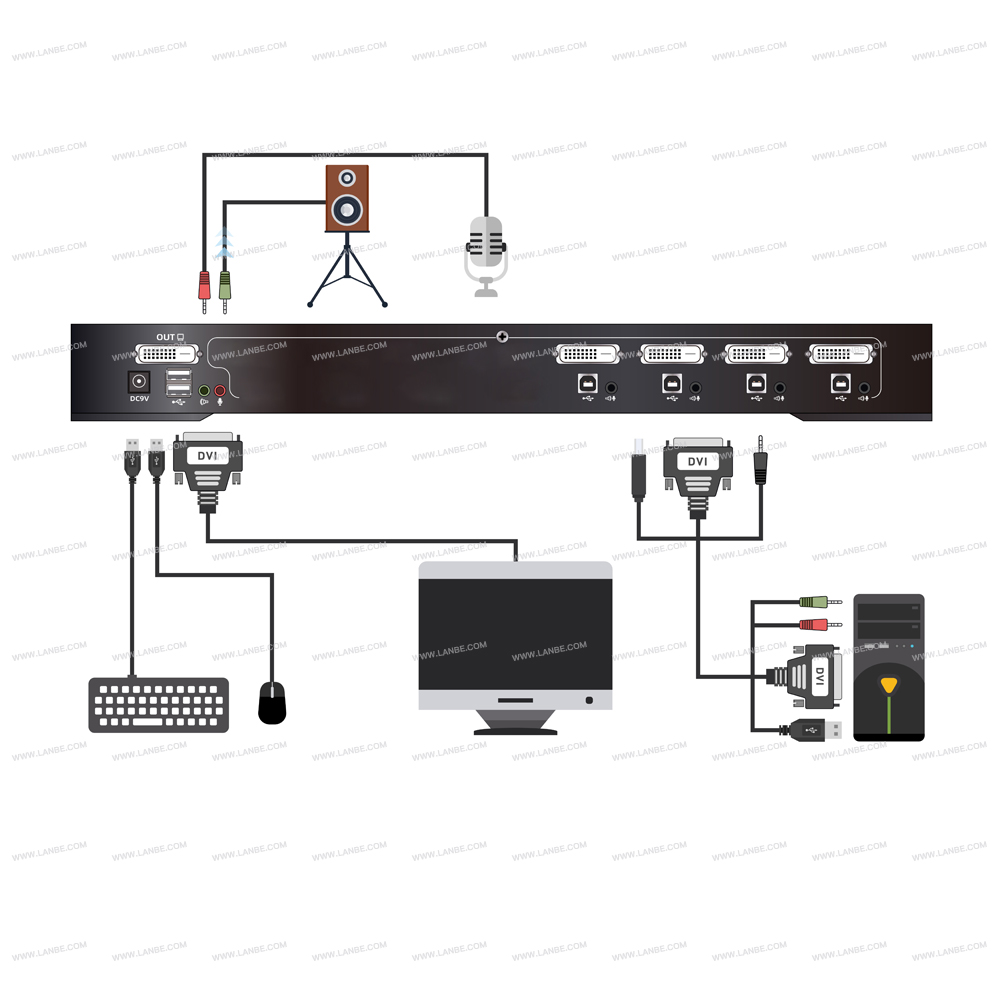 一组USB控制端可管理4台DVI接口电脑