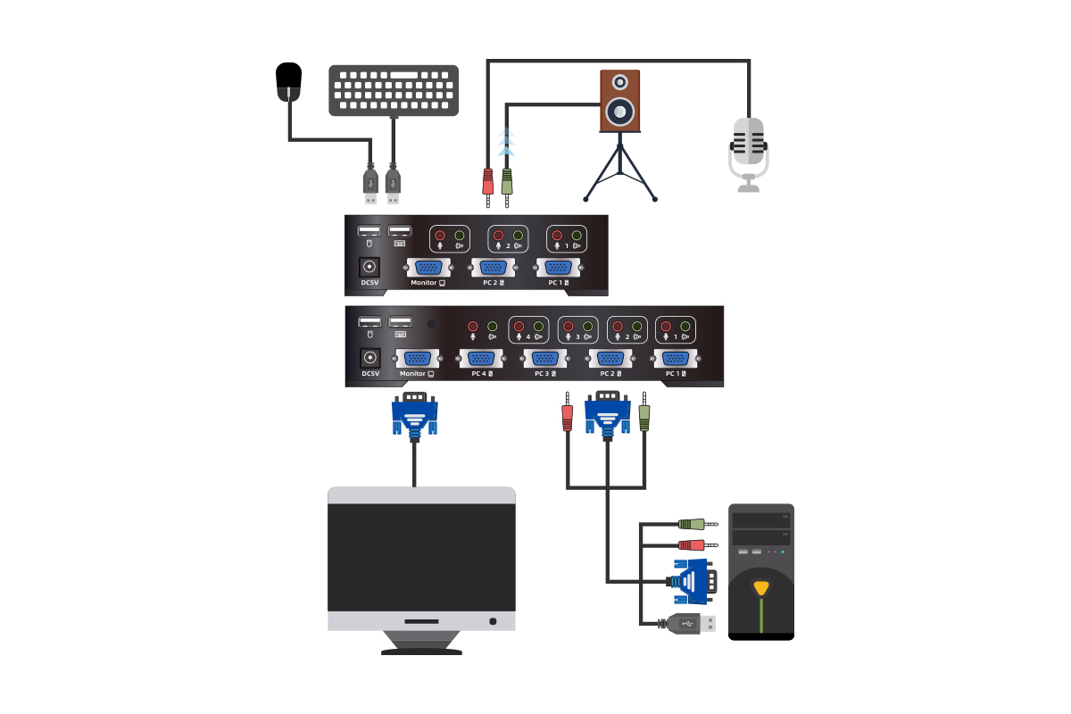 2/4端口USB2.0 多种视频系列KVM切换器