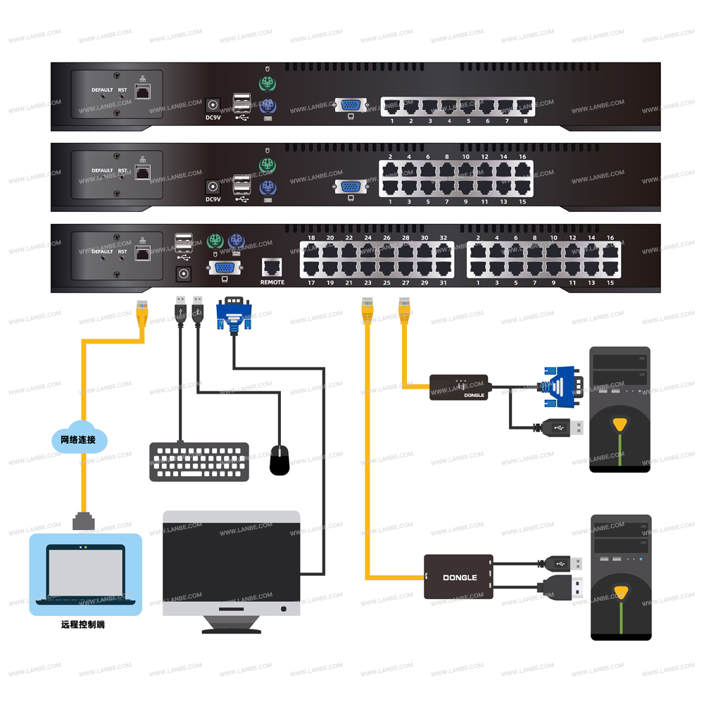 可占口级联两层级控制高达256台电脑?